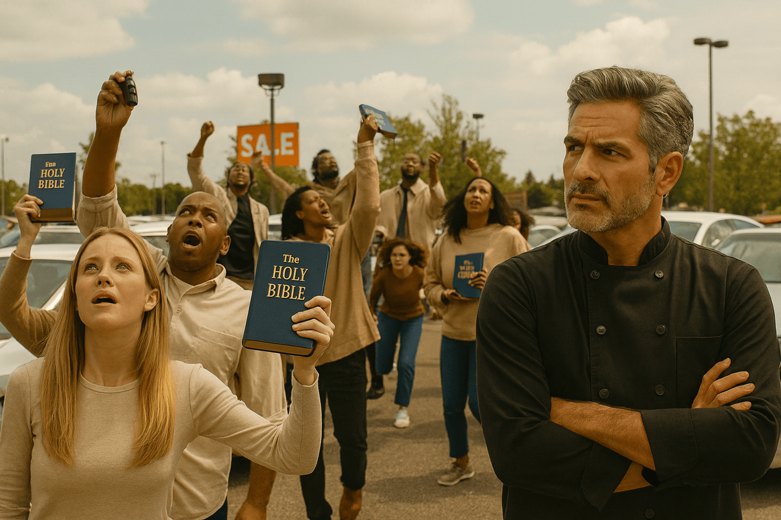 Ever been spiritually ambushed by someone quoting scripture or pushing miracle twigs like they’re handing out eternal life samples at Costco? As a spiritual but not religious chef living with chronic illness, I’ve got some thoughts—and a few logs of my own. Here’s my no-pamphlet-needed take on boundaries, belief, and why passion doesn’t need to feel like a sales pitch.